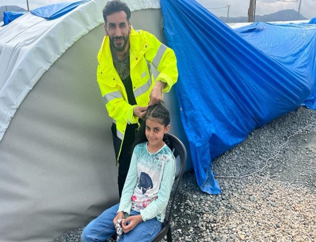 Kuaför Yakup Yıldır, kendi ekibi ve sosyal medyadan haberleştiği meslektaşlarıyla Hatay ve Kahramanmaraş'ta depremzede çocukların saçlarını kesip, tüm bakımlarını yaparak, çocuklara oyuncaklar dağıttı.