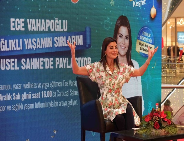 Carousel AVM, spor ve sağlıklı yaşam tutkunlarını bir araya getiren yeni bir etkinliğe imza attı. Ünlü sunucu, yazar, wellness ve yoga eğitmeni Ece Vahapoğlu 27 Aralık’ta Carousel AVM’nin konuğu oldu. Vahapoğlu, sağlıklı yaşamdan beslenmeye, nefes tekniklerinden yogaya kadar tüm merak edilenlerin konuşulduğu söyleşide çeşitli nefes teknikleri de uygulayarak daha genç ve enerjik kalmanın sırlarını paylaştı. İlgiyle izlenen söyleşi sonunda ise katılımcılar sürpriz hediyeler kazanma fırsatı yakaladı.