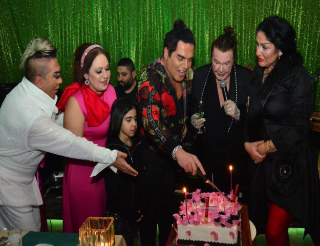 Gecede Şahika Meyhane’nin birinci yılı için sahneye getirilen pastayı Fransua Garo ile birlikte Kuşum Aydın birlikte keserlerken birbirlerine pasta ikram ettiler.